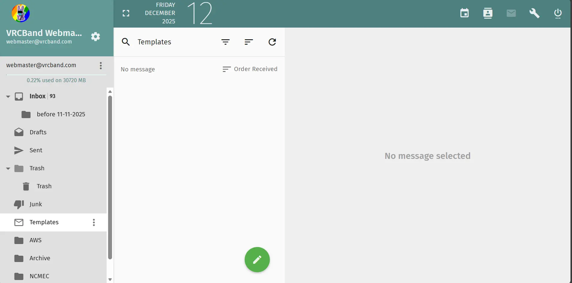 Create a email with a @vrcband.com/@(custom).vrcband.com domain with our own mail server!